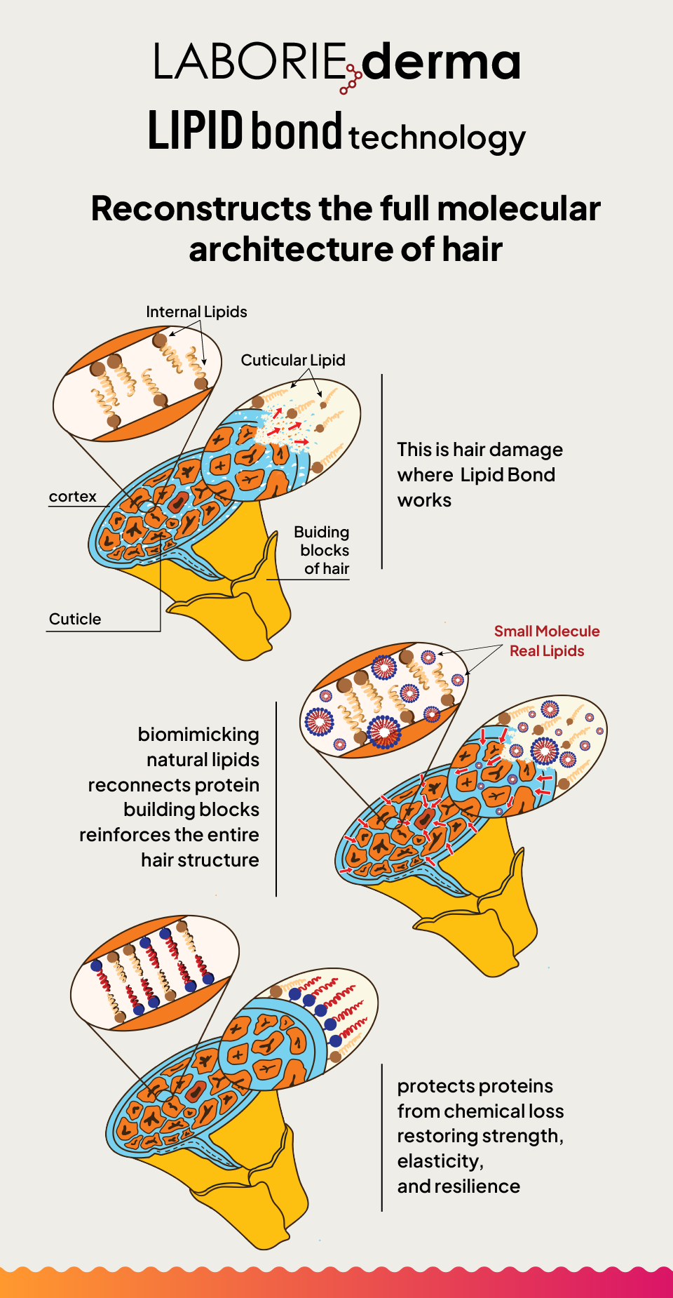 Discover how Lipid Bond technology is patented in the US by Moonshot Biotech. Unlike conventional treatments, this biotechnology doesn’t just bind-it reconstructs the full molecular architecture of hair.
