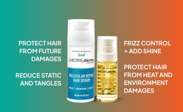 Repair and shine: LABORIE derma delivers solution with Molecular Repair Serum deeply restores and controls frizz on damp hair, protecting against daily damage.