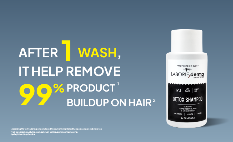Unlock radiant, healthy hair with LABORIE derma Detox Shampoo, the complete solution that deeply cleanses to remove product buildup and hard water, revealing your hair’s natural shine and vitality.